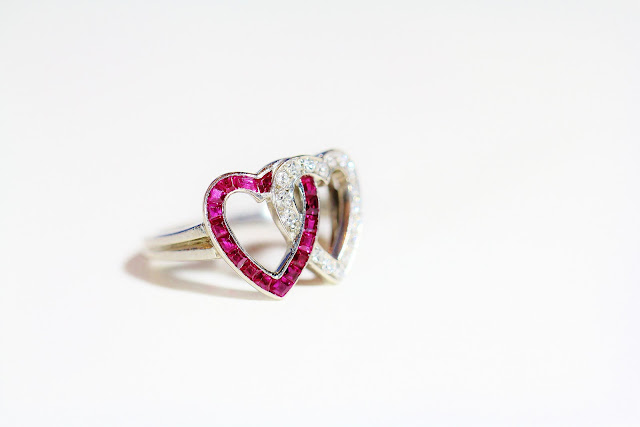 ダイヤモンド&ルビー ダブルハートリングプラチナ