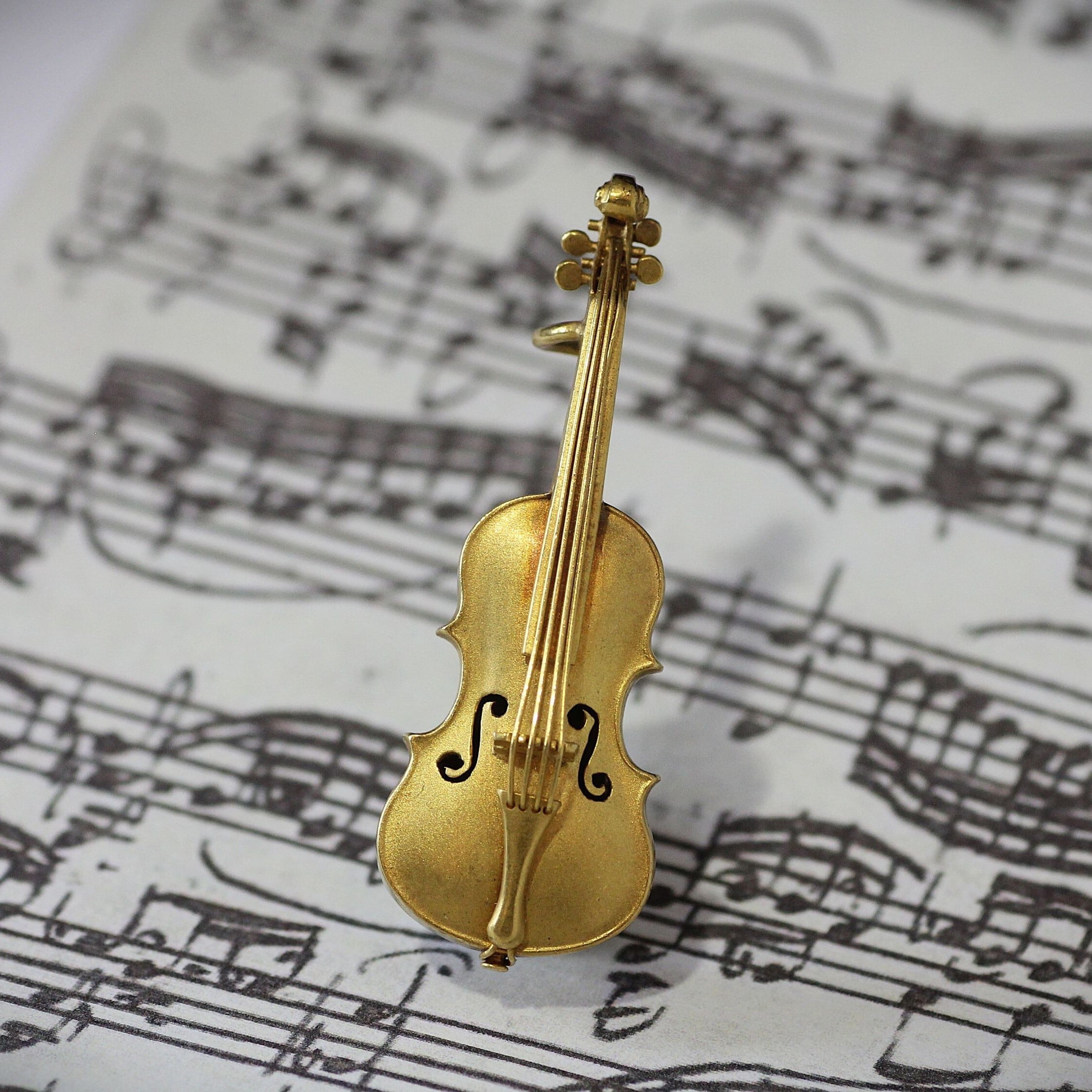 この18Kゴールドで作られたブローチは、美しいヴァイオリンの造形が再現され、細部までしっかりと作り込まれている傑作です。