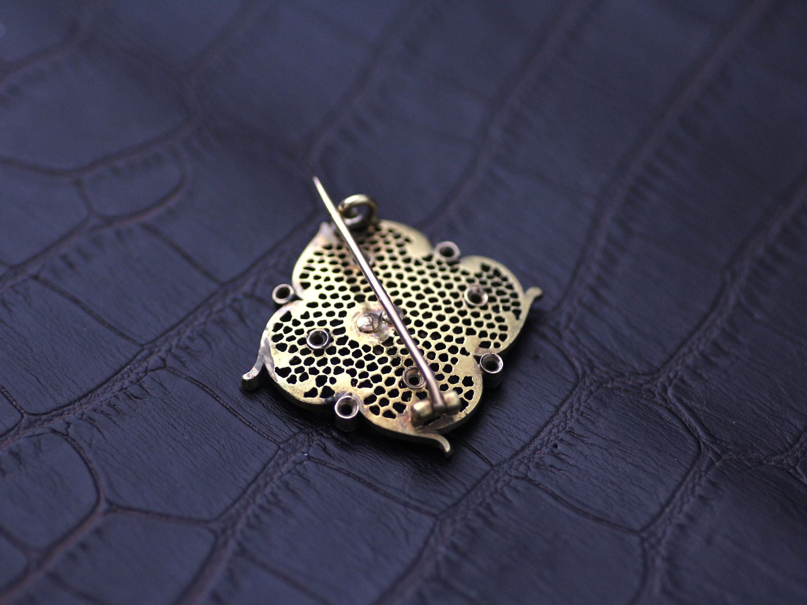 裏側や横から見た写真をみると、このブローチがどれほど時間をかけて丁寧に制作したか想像できます。そして、これを制作したジュエリー美術職人がどれほどの宝飾技術を持っていたのかもわかります。