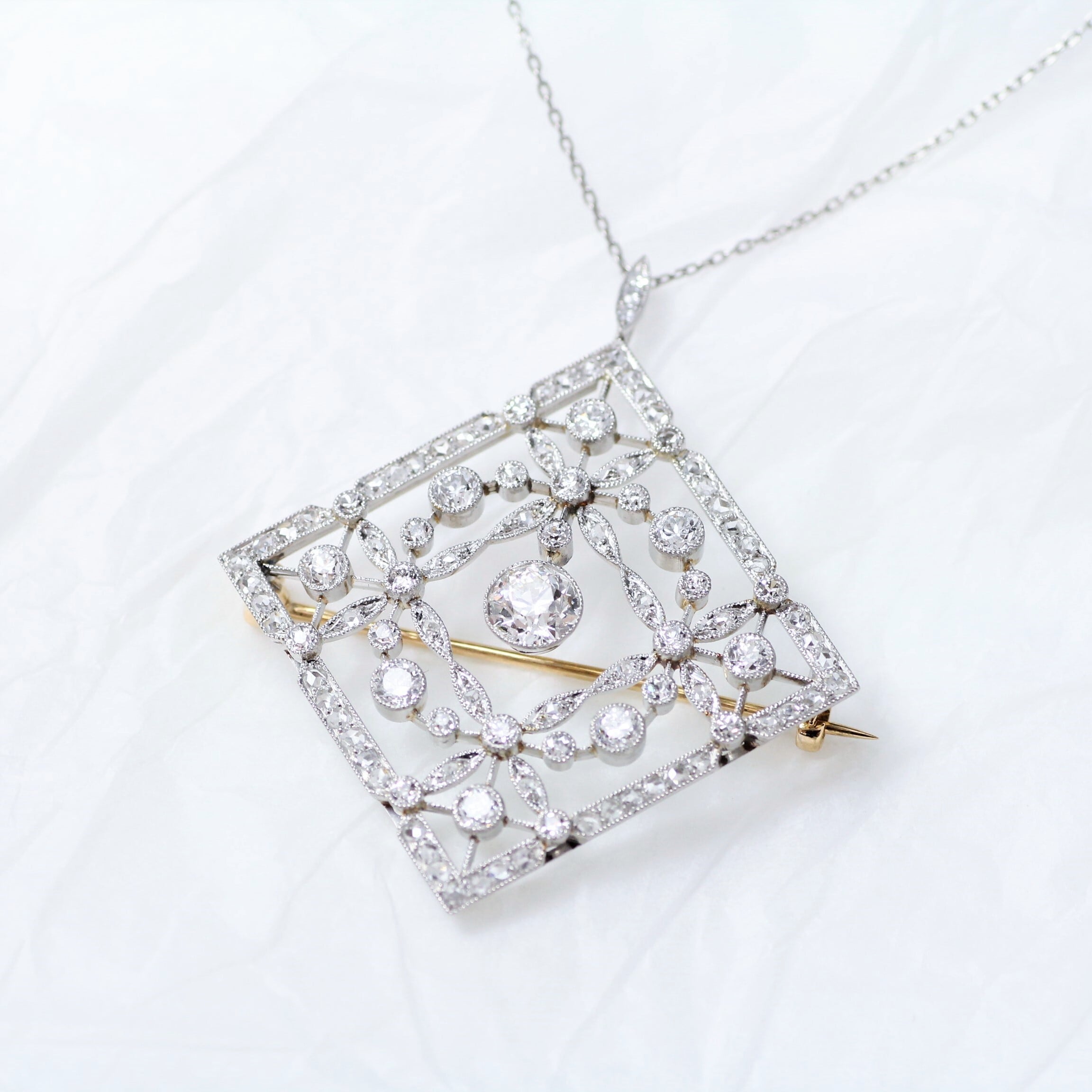 Lozenge-shaped Diamond & Platinum Pendant / Brooch