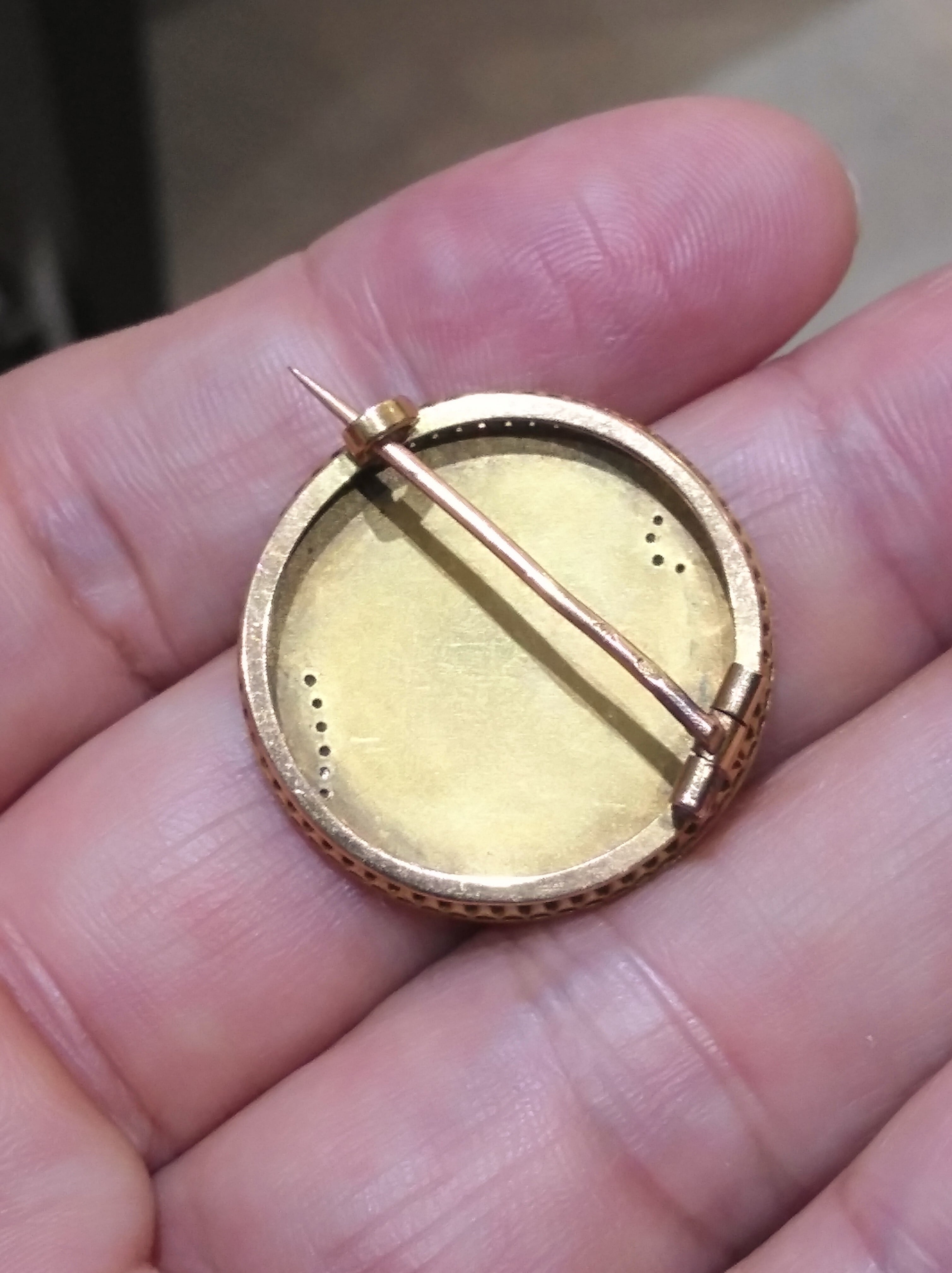 19世紀後期にフランスで描かれたエナメル画です。この時代のフランスやスイスで作られたペインティッドエナメルは、奥行きを感じさせる深い色合いのエナメルと印象的なゴールドの装飾が素晴らしい。