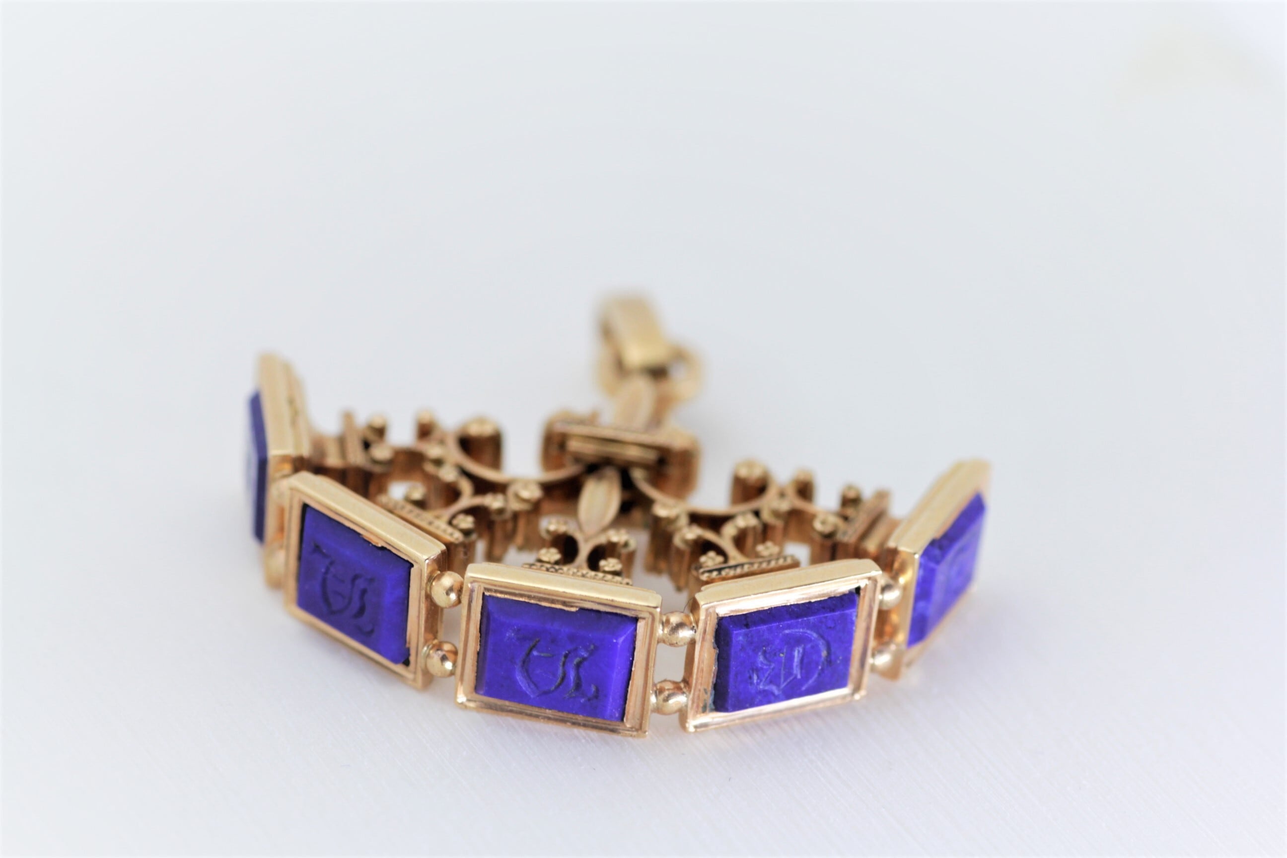 ラピスラズリのそれぞれにはアルファベットがインタリオされていますが、逆さ文字で彫られていないので、やはりシールとして作られたものではなさそうです。