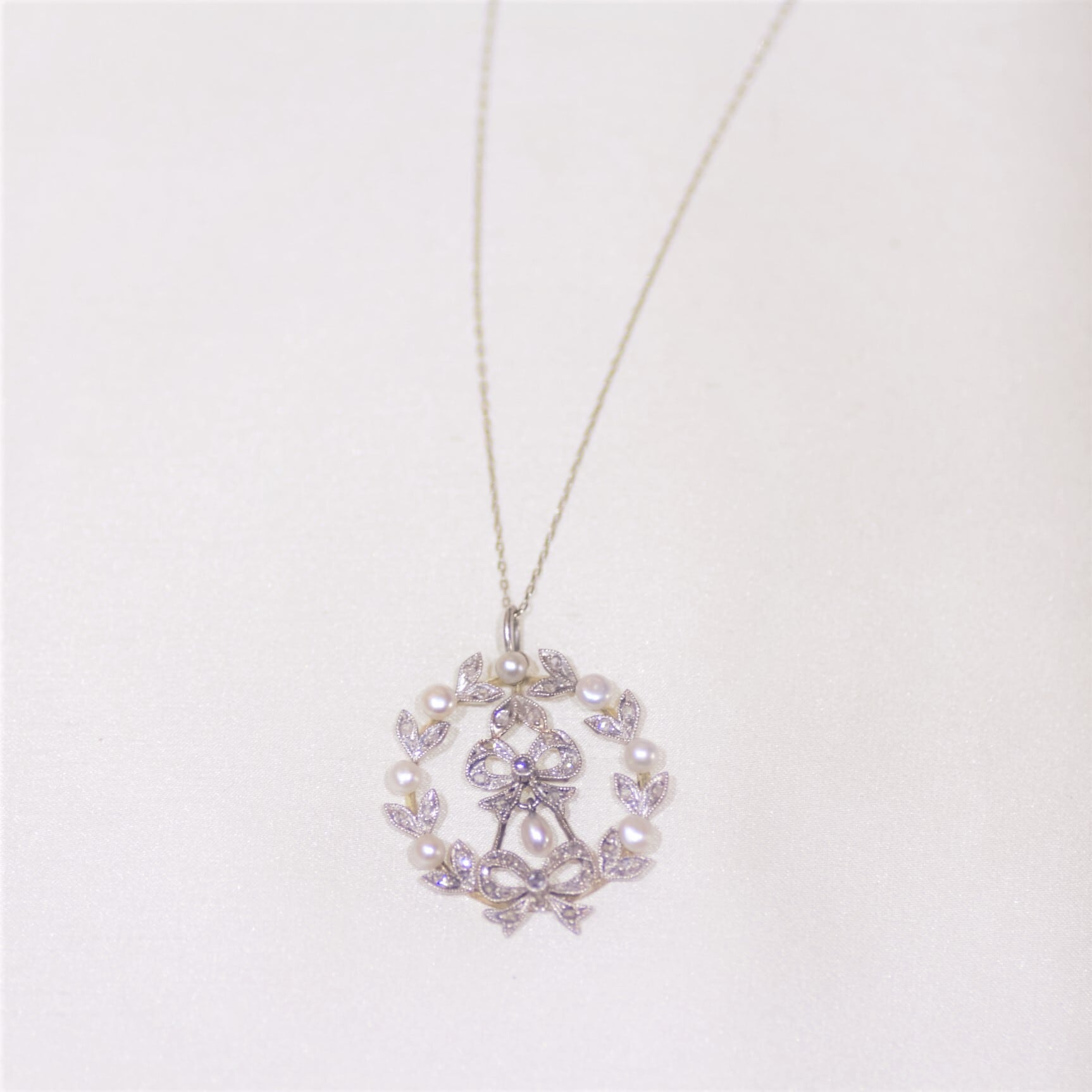 Edwardian Diamond & Pearl Platinum Pendant エドワーディアン ダイヤモンド&パール ペンダント