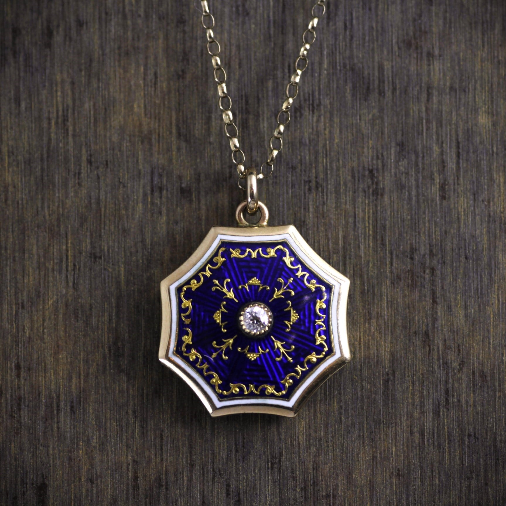 Royal Blue Enamel & Diamond Gold Locket Pendant ロイヤルブルー ギヨシェ・エナメル & ダイヤモンド ゴールド ロケットペンダント