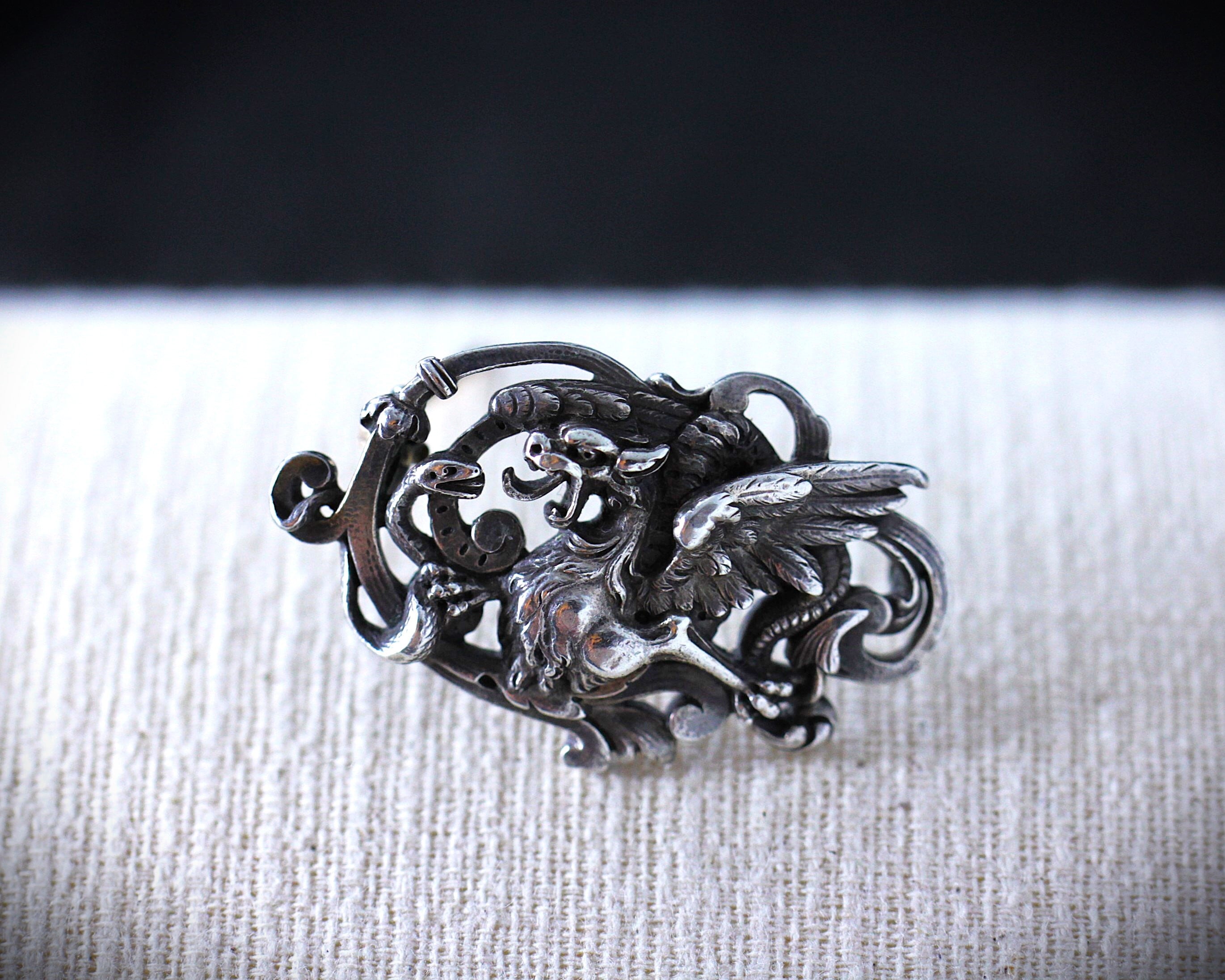 Louis Wiese "Winged Dragon entwined with Snake" ヴィエーズ シルバー ドラゴン ブローチ